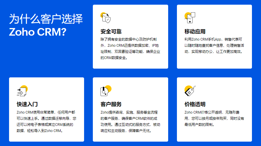 - 注重数据安全、自动化、团队协作、移动办公体验,优先选择Zoho CRM等成熟CRM平台。