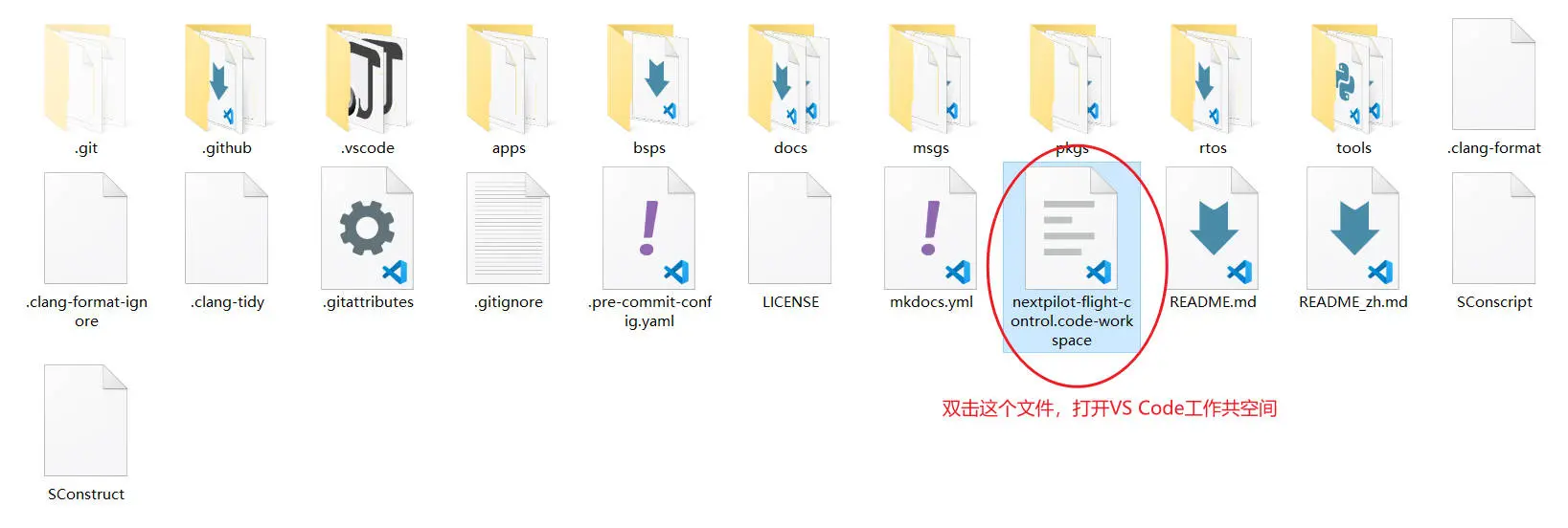 双击nextpilot-flight-control.code-workspace打开VS Code工作空间