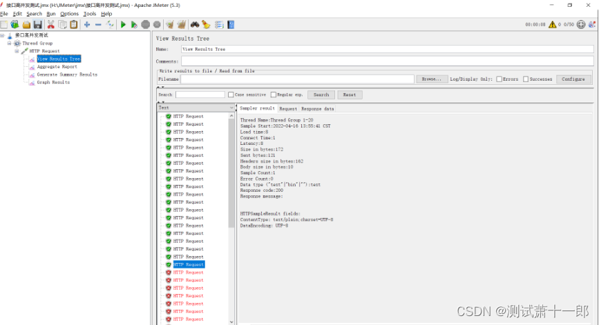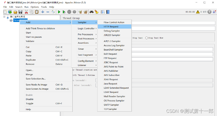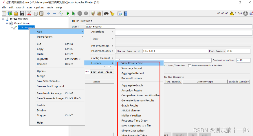 依次添加察看结果树、聚合报告、生成概要结果、图形结果