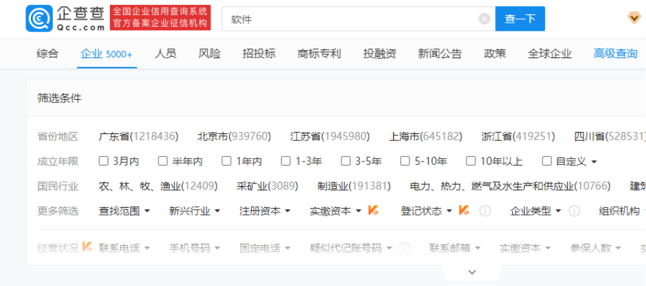 在天网查上看了一下全国软件公司有1000多万家,其中上市的公司有7万多家,也就是占比0.7%。
