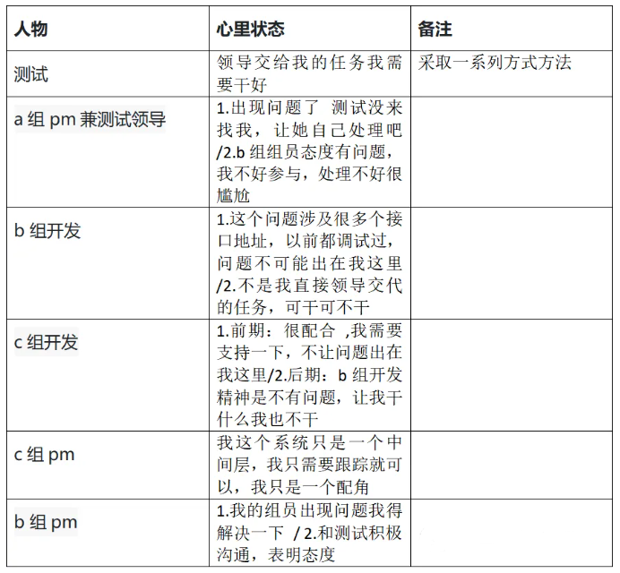 通过上面的过程,总结不同人的心理状态,如下表格: