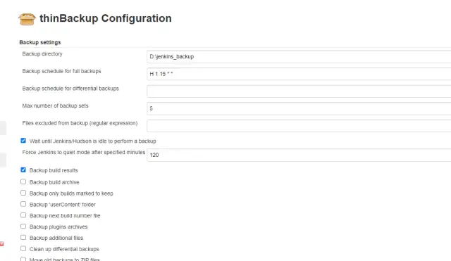 使用 ThinBackup 插件,允许我们对Jenkins配置信息进行全量或增量备份,由于插件不会保存构建历史和构建工件,所备份过程更为快捷,并且无需关闭Jenkins服务器。