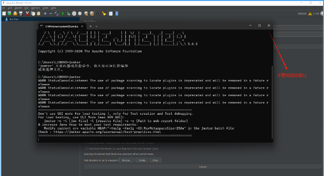 - 注意:不管用使用哪一种方式打开,都会打开一个cmd窗口。如果关闭这个cmd窗口,打开的jmeter也会被关闭。