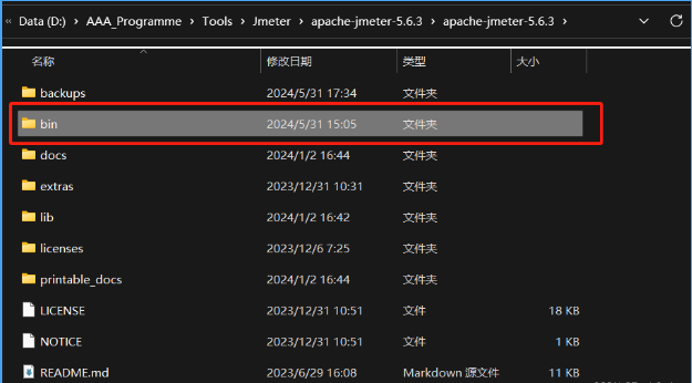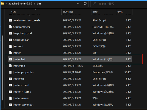 进入 apache-jmeter-5.6.3/bin 文件夹,点击 jmeter.bat 文件,运行JMeter