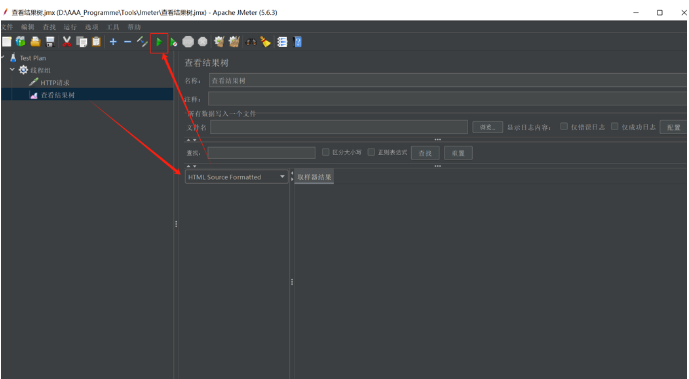 将查找下方的响应数据格式改为 HTML Source Formatted,点击上方的绿色三角按钮,运行http请求