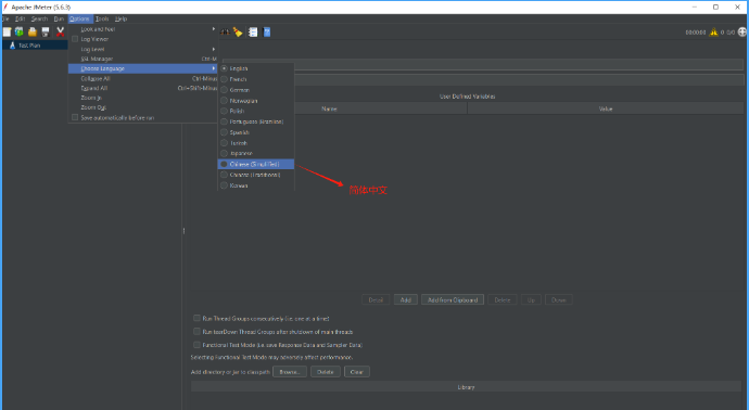 在上方导航栏,选择 Options -> Choose Language -> Chinese(Simplified),将语言切换为中文