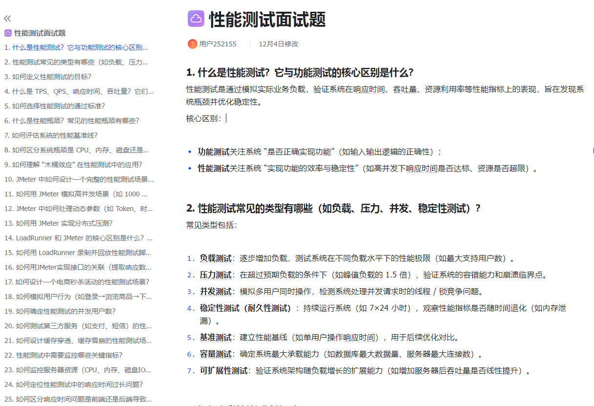 - 什么是性能测试?它与功能测试的核心区别是什么?