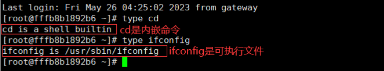 可以使用type命令来确定一个命令是否是内置命令: