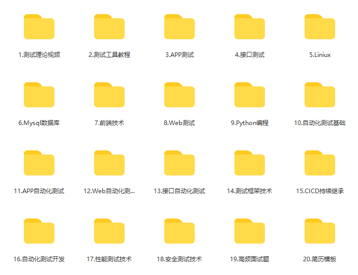 这些资料,对于【软件测试】的朋友来说应该是最全面最完整的备战仓库,这个仓库也陪伴上万个测试工程师们走过最艰难的路程,希望也能帮助到你!