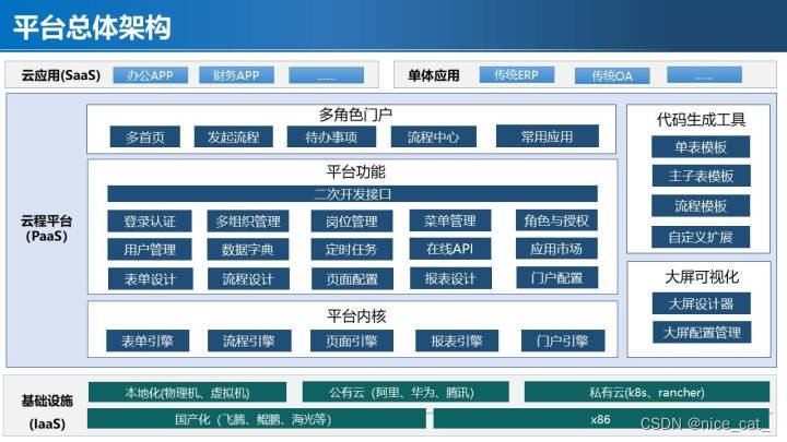 云程平台是一款基于springboot+vue.js的低代码开发平台。采用微服务、前后端分离等标准云原生架构,基于可视化业务建模、流程建模、表单建模、页面建模、报表建模、大盘建模、移动端建模等工具,零代码快速构建云端业务应用 ,平台即可本地化物理机或虚拟机部署,也可基于华为云、阿里云、企业私有云方式部署。云程平台也是一款专业的BPM软件,即可独立部署,支撑企业级端到端流程落地,也可嵌入到您的OA、ERP等系统中,作为流程引擎组件使用。云程平台主要目的让开发者注重专注业务,降低技术难度,从而节省人力成本,缩短项目周期,提高软件安全质量,为企业信息化建设降本增效。云程研发团队核心成员有10年以上的软件研发经验,聚焦于低代码平台、流程引擎等中间件产品研发,即可输出平台产品和组件,也可交付平台源代码。核心能力包括:
