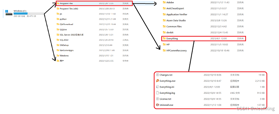 例如我们C盘对应路径下的某个文件 EveryThing.exe程序: