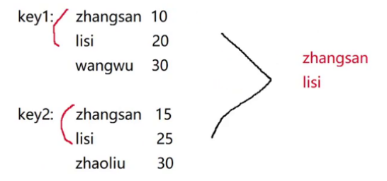 - numkeys描述后续有几个key参与运算。如果是三个key求交集,那么numkeys = 3