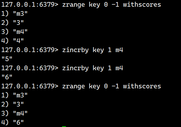 - 添加的时候,既要添加元素,又要添加分数。这里的member和score称为一个pair。不要把pair理解为一个键值对。
