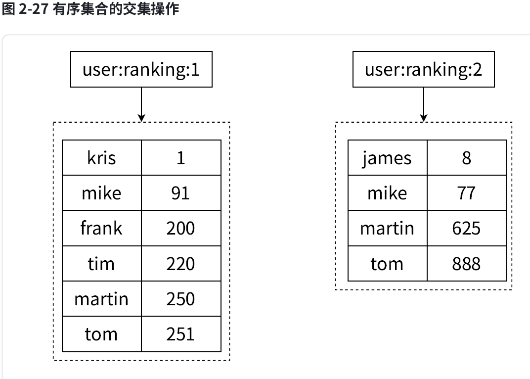 对于此处的有序集合zset同样存在这种操作,这里不做过多讲解,其使用方法和sdiff等相同。