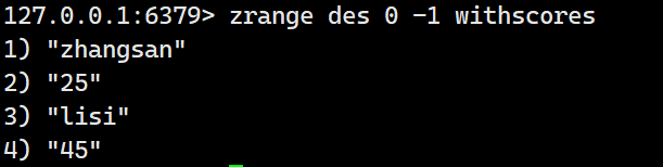 但是没有分数。携带参数withscores继续查询(查询结果是升序的):