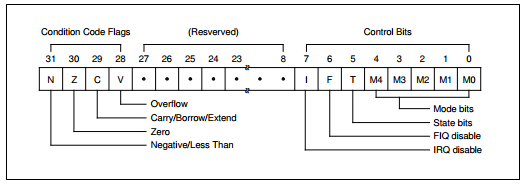 cpsr为当前状态寄存器,它的格式如下所示: