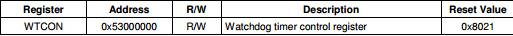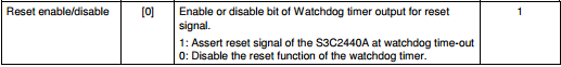 从硬件手册可以看出当WTCON寄存器第0bit内容为0,即关闭定时器0复位功能,与上面代码相吻合。