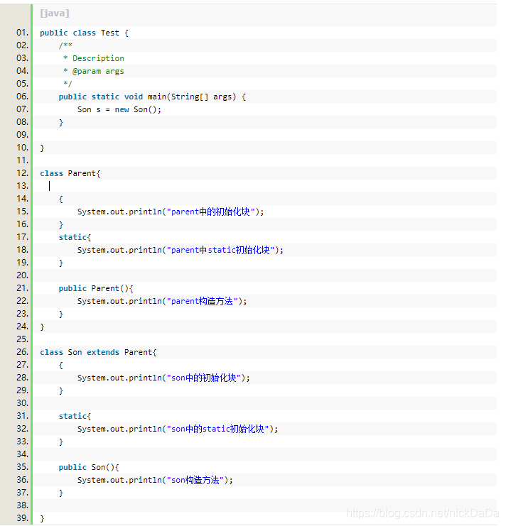 当创建子类对象时,需要先调用父类构造器(Object是顶级父类),如果有静态块则优先执行,如果有初始化块则优先于构造器执行