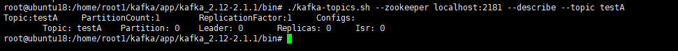 ./kafka-topics.sh --zookeeper localhost:2181 --describe --topic testA