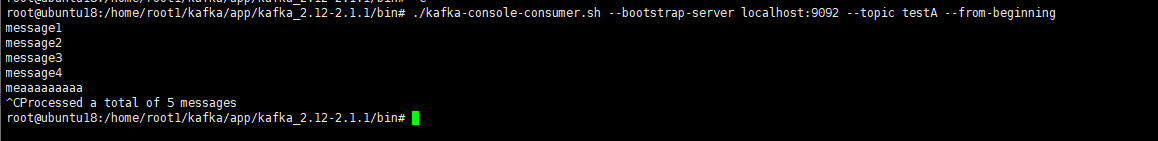 ./kafka-console-consumer.sh --bootstrap-server localhost:9092 --topic testA --from-beginning