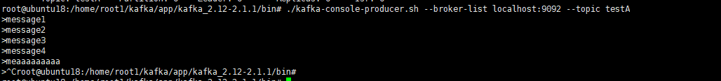 ./kafka-console-producer.sh --broker-list localhost:9092 --topic testA