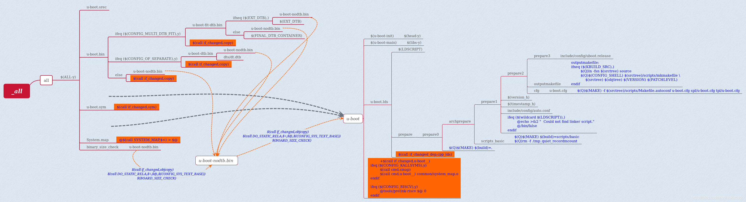 1、当在根目录敲下 make ARCH=arm CROSS_COMPILE=arm-linux-gnueabihf- 时,makefile的找到那些目标,如下图所示: