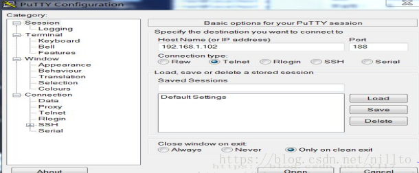 选择“协议”为Telnet,填写远程主机的主机名为远程的IP地址,端口修改为188.登录成功的界面如下所示: