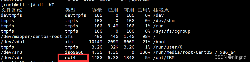 /*因为IBM是默认的安装目录,所以将/vdb目录下的磁盘挂载到/IBM目录下*/