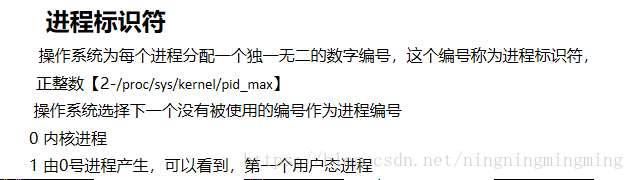 - 标识符:与进程相关的唯一标识符,用来区别正在执行的进程和其他进程。