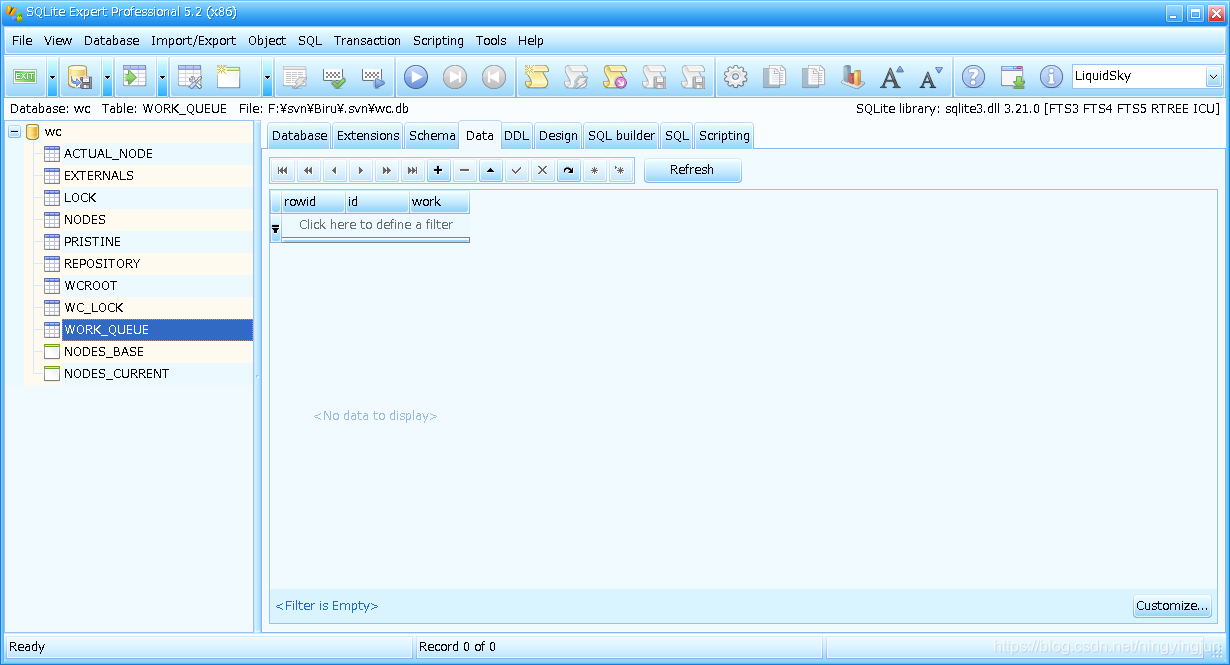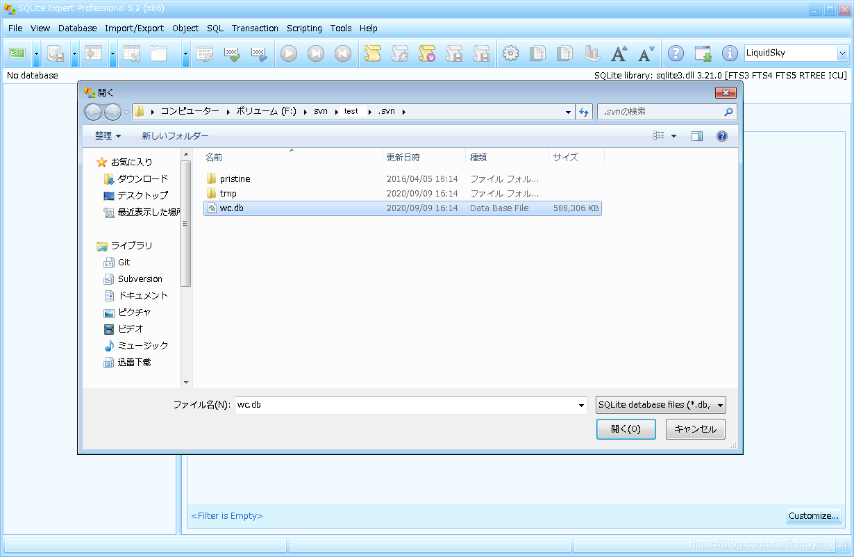 2.打开SQLLite工具,点击【Open Database】,选择对应项目中的【.svn】中的【wc.db】文件。