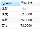 SELECT class.c_name,avg(choosen_class.grade) as '平均成绩' from class LEFT JOIN choosen_class on class.c_id = choosen_class.c_id GROUP BY (choosen_class.c_id)
