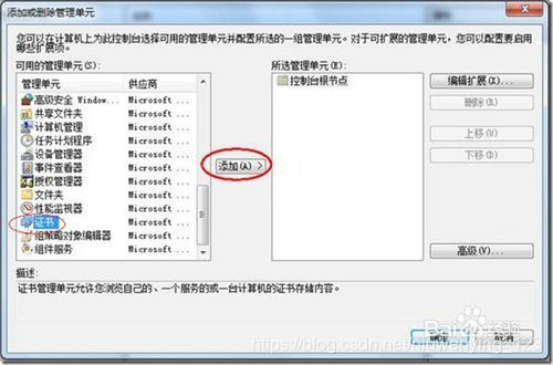 (4)选择“证书”,并点击“添加”,如下图所示: