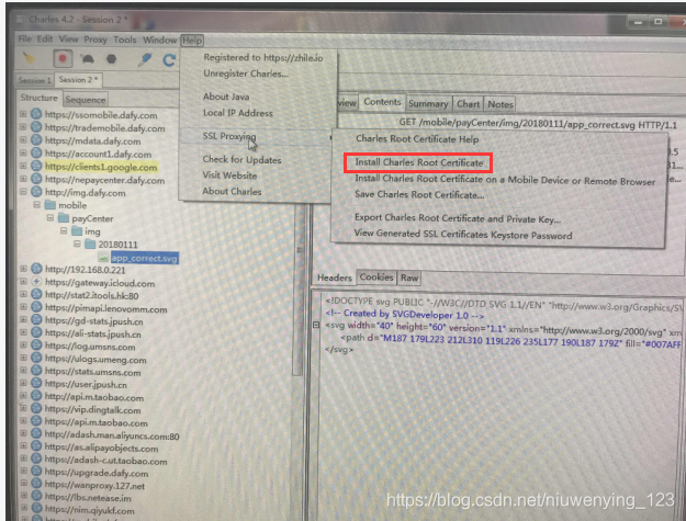 进入目录:Help -> SSL Proxying -> Install Charles Root Certificate