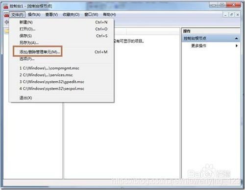 (3)点击“文件—添加/删除管理单元”,如下图所示: