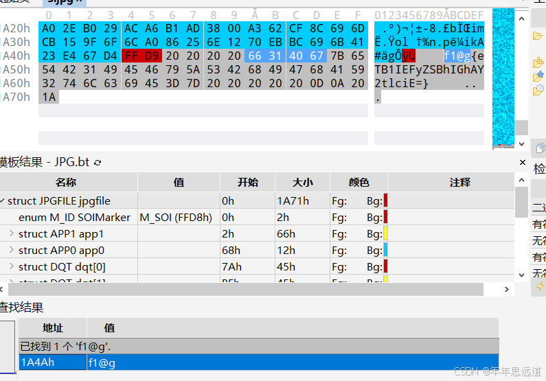 随波逐流无有效信息,打开010editor搜索发现f1@g即flag,