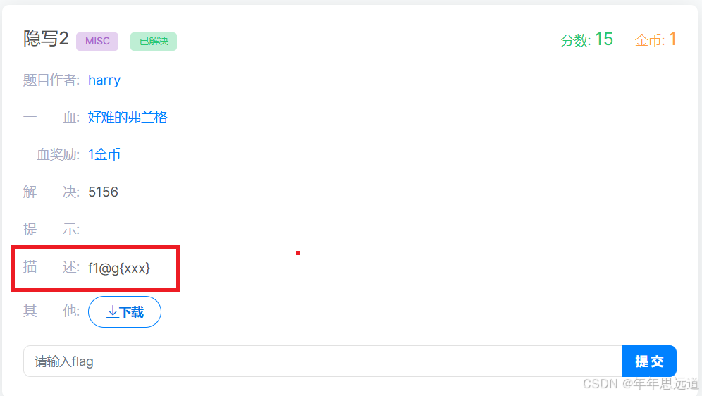 提交结果时要注意格式,描述为f1@g{}而不是flag{}