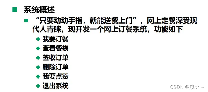 这是一个简单的餐饮系统实现,包括Food、Order和OrderItem类,用于表示菜品、订单和订单项。系统提供点餐、查看餐袋、签收、删除订单和点赞等功能。用户可以输入菜品编号和数量进行点餐,并设置配送时间和地址。订单处理逻辑在OrderService中实现,包括添加订单、查找订单、签收和删除订单的方法。FoodDao和OrderDao负责数据存储,使用静态Map模拟数据库操作。