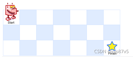机器人每次只能向下或者向右移动一步。机器人试图达到网格的右下角(在下图中标记为 “Finish” )。