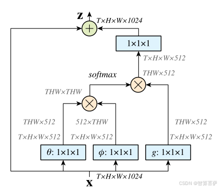 非局部操作(Non-local Operation)是该研究的核心创新点,其数学定义源自经典计算机视觉中的非局部均值算法(Non-local Means)。在深度神经网络中,非局部操作被形式化为: