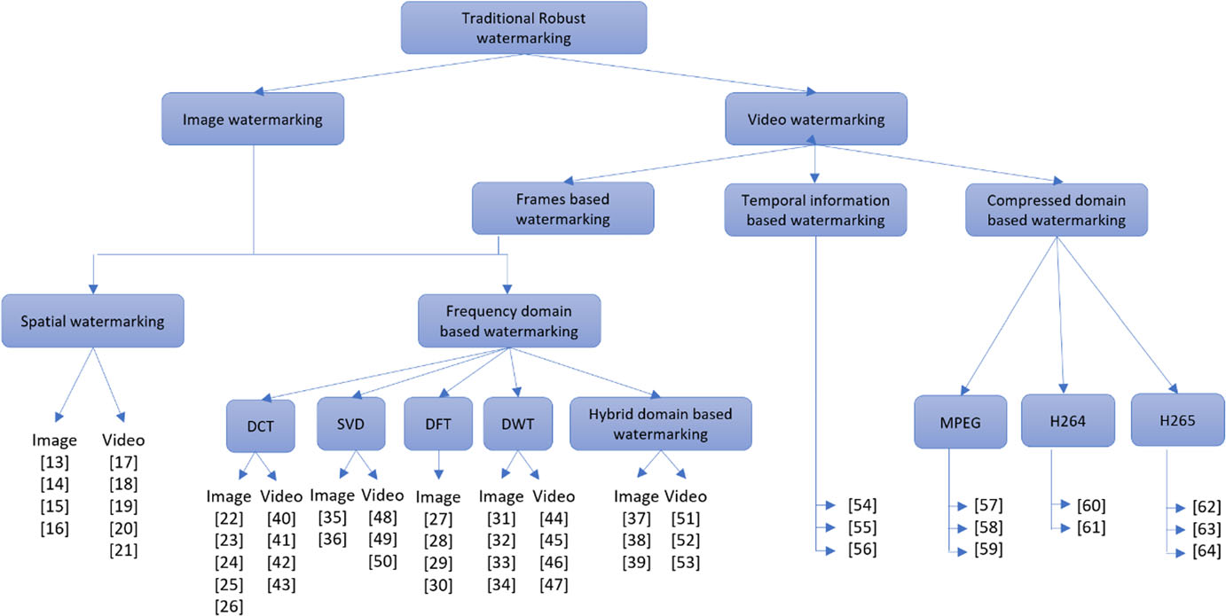 总之,传统鲁棒图像和视频水印技术的分类如图4所示。