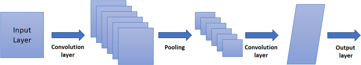 CNNs非常适合不同的应用,如分类和识别,这要归功于其在有限参数数量下的数据表示效率[50]。CNN算法是专门为提取和识别二维图像细节而开发的专用多层感知器。CNN架构通常由多个层组成,包括输入层、卷积层、池化层和输出层,如图6所示。CNN通过获取输入图像并对其进行一系列卷积和子采样操作来启动。每个卷积层包括一个滤波器矩阵集合,这些矩阵与前面的图像矩阵相乘以提取称为输出通道图的重要特征。随后,池化层用于减少输入图的维度,同时保留关键信息。最大池化是一种子采样技术,选择每个块内的最大值。通过激活函数(如修正线性单元(ReLU),将负值设为零)将非线性引入网络。为了减轻过拟合并加速学习,可以在网络训练期间使用批归一化。