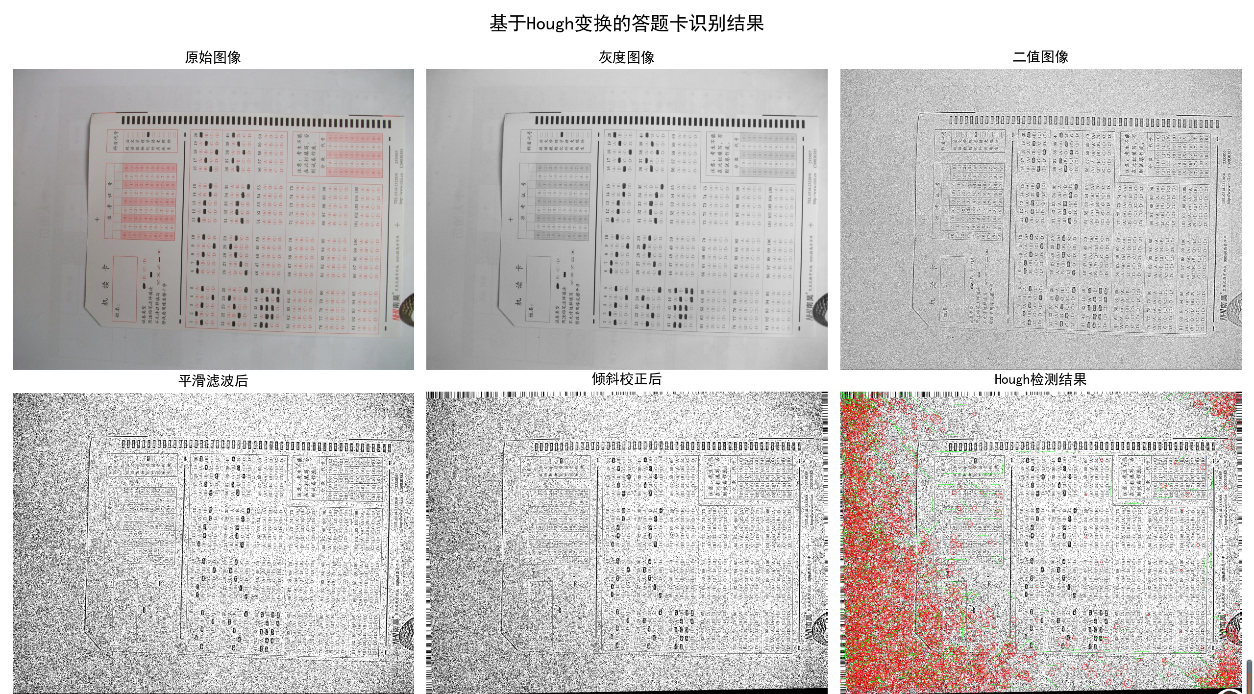 fig.suptitle('基于Hough变换的答题卡识别结果', fontsize=16)