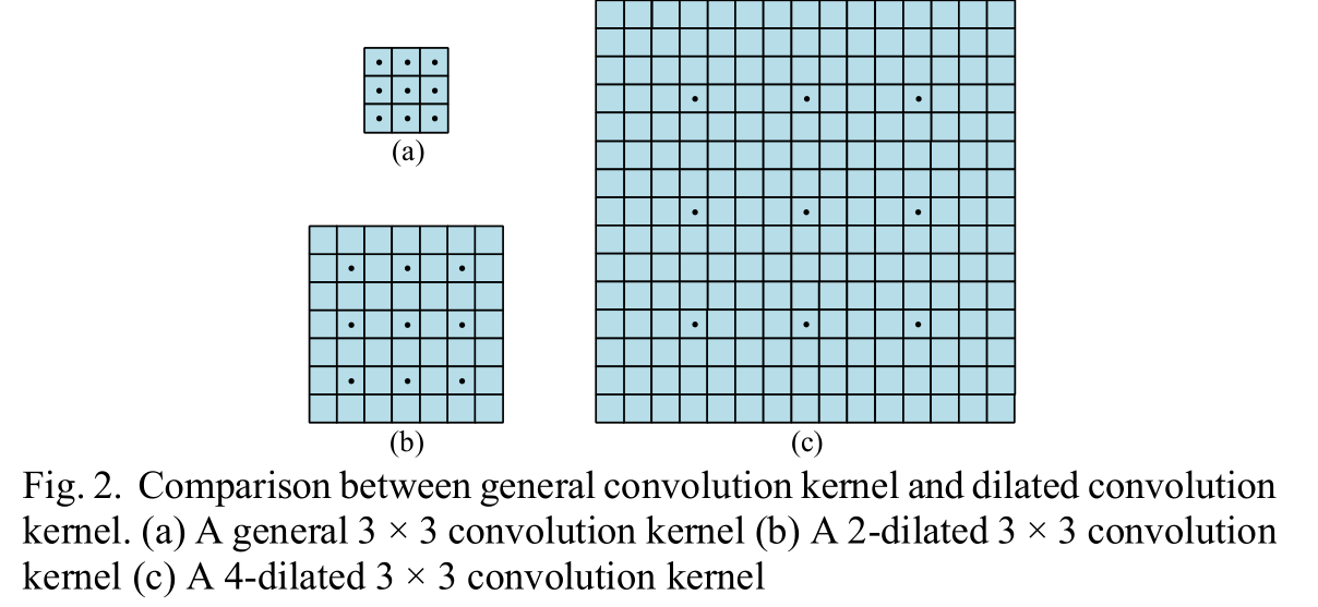 膨胀卷积(Dilated Convolution) 为了使卷积核感知更大的区域,提出了膨胀卷积。虽然有效核点仍然是3×3,但2-膨胀卷积具有7×7的感受野,4-膨胀卷积具有15×15的感受野。这种技术允许网络在不增加参数的情况下扩大感受野。