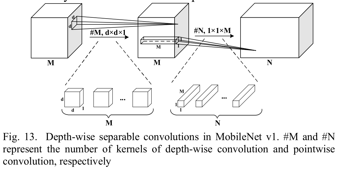 设输入特征图尺寸为DF×DF×M,输出特征图尺寸为DF×DF×N,卷积核尺寸为DK×DK,则: