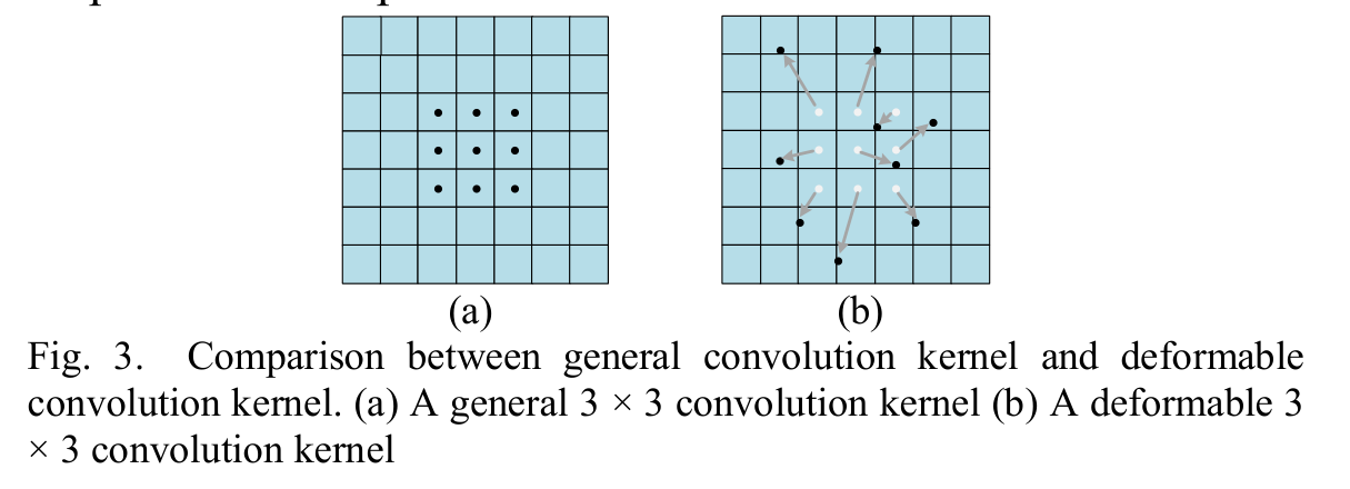 可变形卷积(Deformable Convolution) 为了处理现实世界中物体形状通常不规则的问题,提出了可变形卷积。可变形卷积能够只关注感兴趣的区域,使特征图更具代表性。这种卷积允许采样位置根据输入内容自适应地变形。