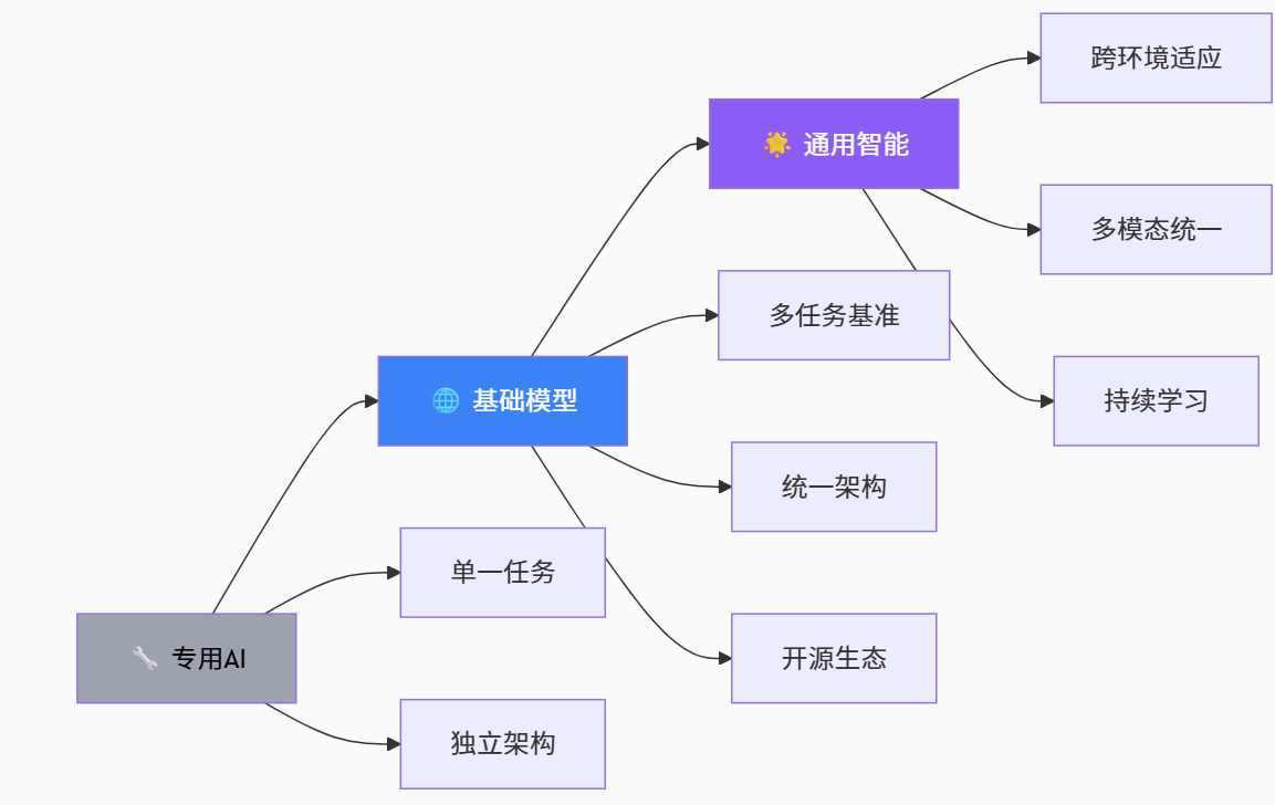 | 迁移与持续学习能力 | 任务间迁移弱,更新往往意味着重新训练 | 支持跨任务迁移与持续学习,历史经验可迁移到新场景 |