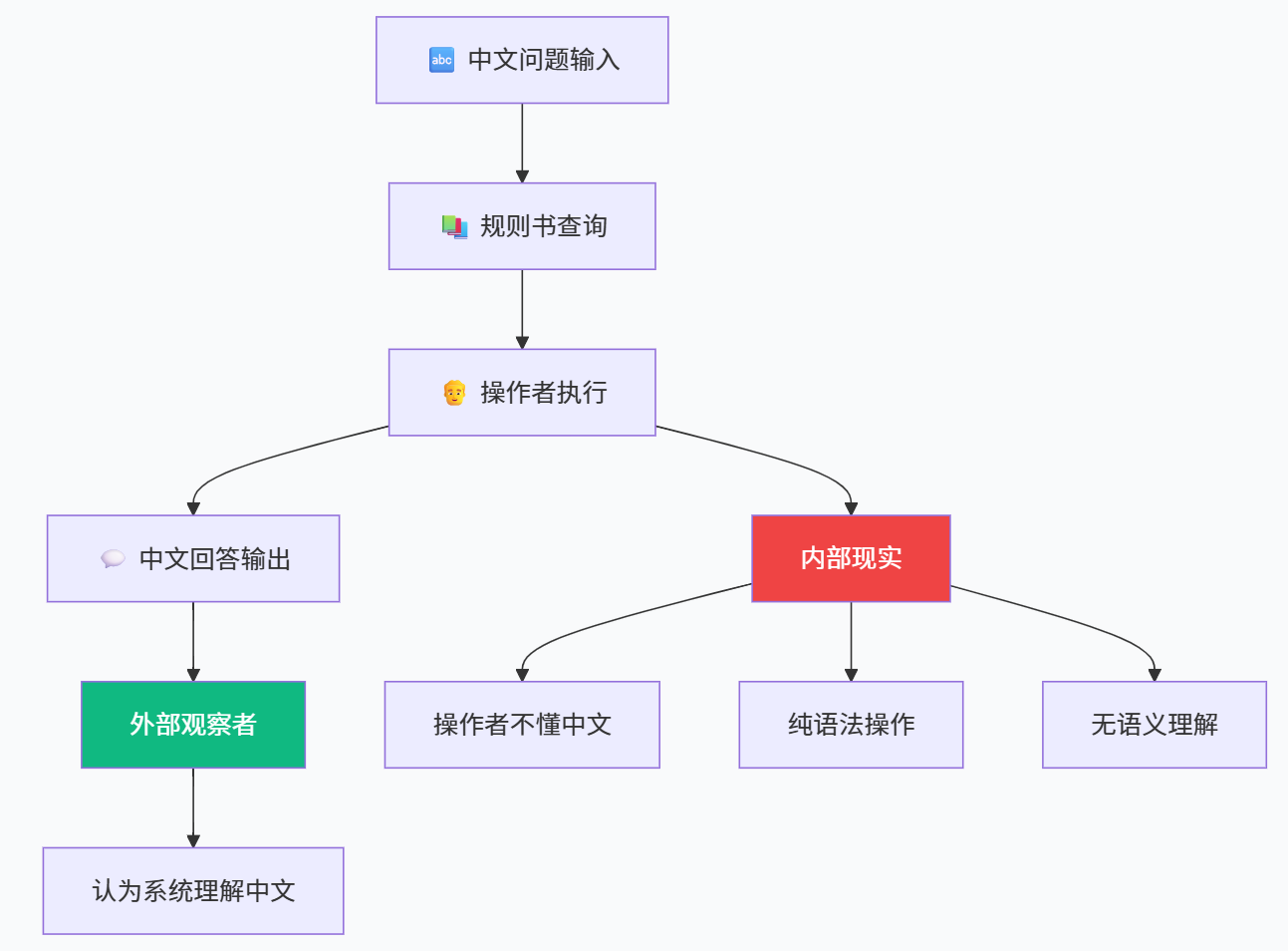 | 语法与语义 | 强调仅凭形式规则处理符号并不等同于拥有语义与意向性 | 要求强 AI 理论解释“符号如何获得意义”,而不是只关注形式计算 |
