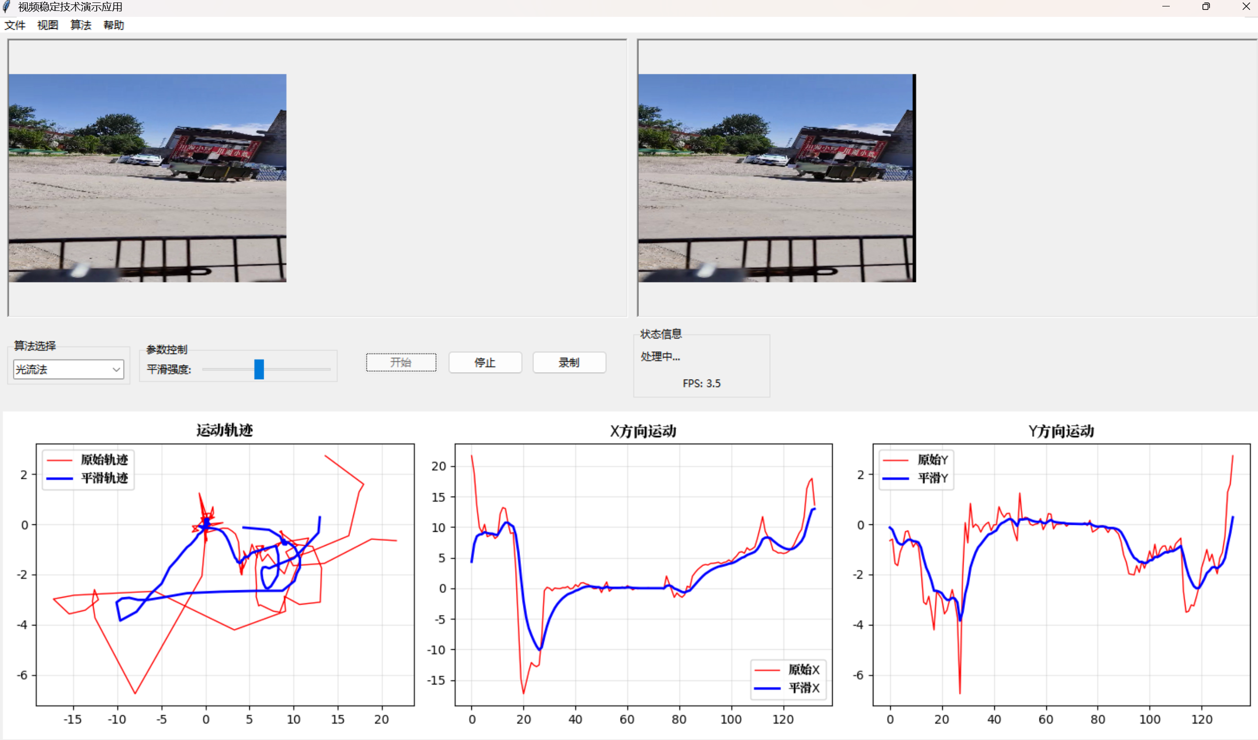 控制层(VideoStabilizerApp):核心调度器,管理算法生命周期、处理流程与状态同步。使用策略模式实现算法热切换,select_algorithm()方法在运行时动态替换处理实例。