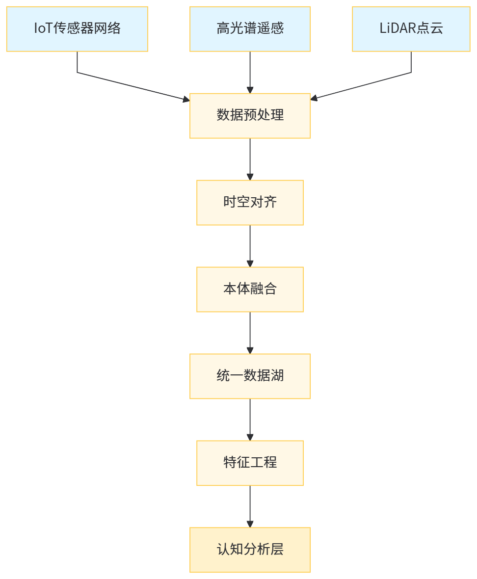 现代矿山每日产生TB级异构数据,包括地质勘探数据(钻孔岩芯、地球化学、地球物理)、设备传感数据(振动、温度、压力)、环境监测数据(粉尘、水质、噪声)以及视频流数据。2025年研究指出,有效整合这些多模态数据是AI应用的基础前提。该层核心技术包括: