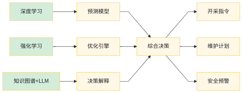 该层是AI挖矿的"大脑",负责从海量数据中提取知识并生成优化决策。2025年研究指出,深度学习、强化学习与知识图谱构成了该层的三大支柱。
